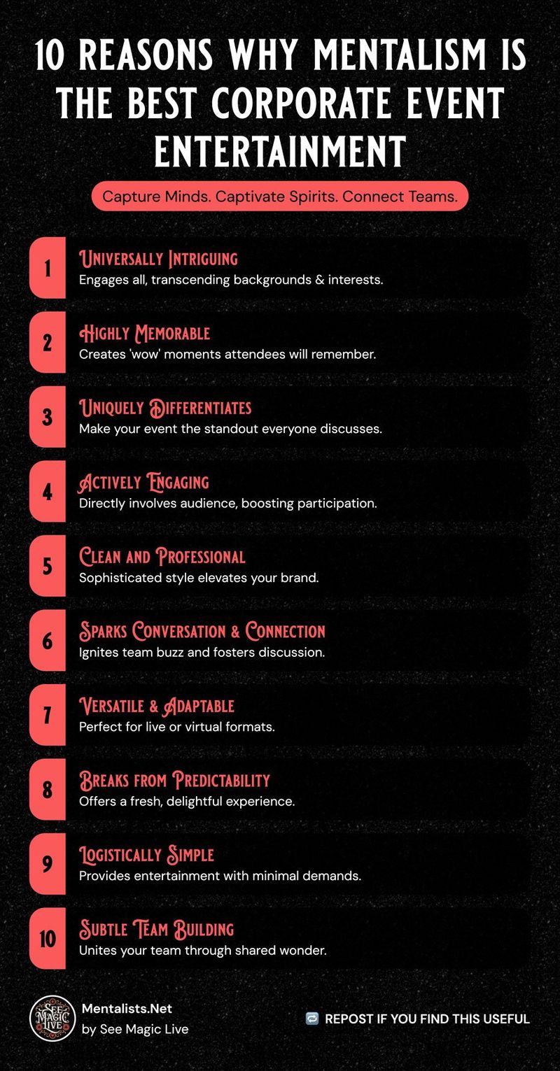 Why Mentalism is the Best Entertainment Idea for Corporate Events: 10 Reasons It Leads the Corporate Entertainment Ideas Category